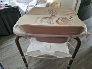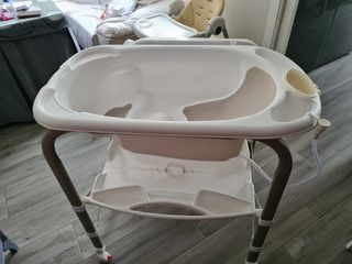 Bañera cambiador para bebés, ideal para el cuidado diario. - Estructura resistente y estable. - Cambiador acolchado. - Bandeja inferior para accesorios. Sólo esponja un poco deteriorado (foto)