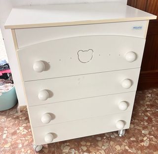 Preciosa para bebé, en perfecto estado. - Estructura de madera. - Incluye cambiador acolchado con estampado de ositos. - Bandeja inferior con espacio de almacenaje.