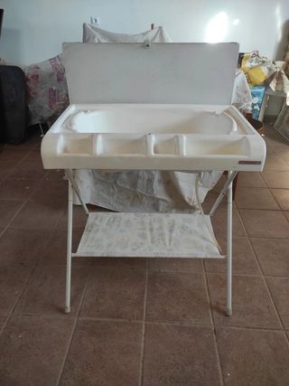 Bañera con cambiador para bebé, en buen estado. Solo la bandeja de abajo hay que ponerle dos tornillos para que se sujete.