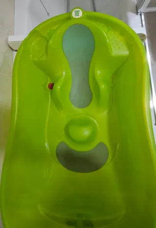 Se vende bañera de bebe, esta muy bien cuidada. Lleva cubo estilo regadera y antideslizantes. Se puede plegar como se muestra en la foto. Se entrega en su caja original.