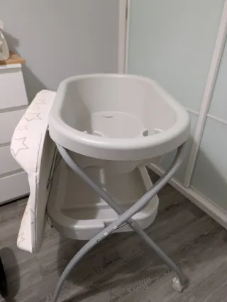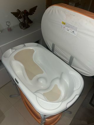 bañera bubble chicco. está casi sin estrenar, nos la regalaron y cuando la fuimos a poner no nos cabia bien en el baño. el cambiador es del color de la primera foto y la estructura gris como la segunda foto.