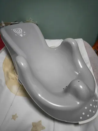 Bañera para bebé en color gris, en buen estado. Incluye soporte con patas para facilitar el baño. - Diseño ergonómico y cómodo para el bebé. - Material plástico resistente y fácil de limpiar. - Sistema de drenaje para vaciar el agua fácilmente. - Patas plegables para un fácil almacenamiento. REGALO COJIN ESPECIAL PARA BAÑARLE RECIEN NACIDO