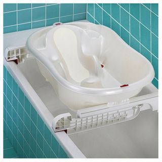 Soporte para bañera de bebé, diseñado para ofrecer comodidad y seguridad durante el baño. - Estructura blanca. - Patas estables.