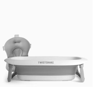 Se vende bañera plegable de la marca Twistshake, ideal para el baño del bebé. Incluye un flotador para mayor comodidad y seguridad. - Diseño plegable para fácil almacenamiento. - Color gris y blanco.