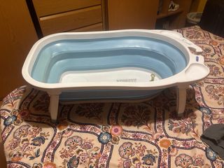 Bañera plegable para bebés, diseñada para facilitar el baño y el almacenamiento. Incluye un cojín adaptable para mayor comodidad. - Diseño plegable para ahorrar espacio. - Cojín suave y ergonómico. - Materiales seguros para bebés. - Fácil limpieza - El tapón cambia de color al estar caliente el agua - Tiene su caja - Solo dos usos
