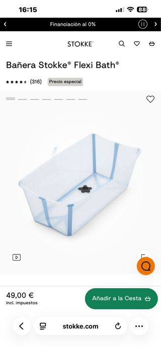 Bañera para bebé plegable de la marca STOKKE, ideal para ahorrar espacio. Está en buen estado y es muy práctica. - Plegable para facilitar el almacenamiento. - Material plástico translúcido resistente. - Estructura de metal gris.