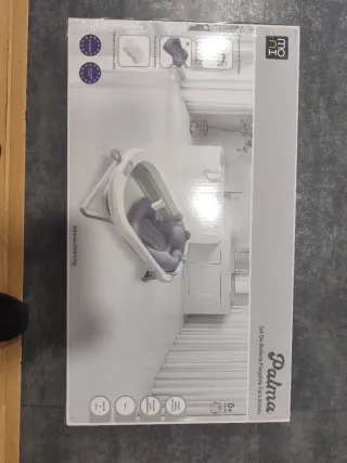 Set de bañera plegable Moni Palma para bebés. Nueva sin estrenar, en su embalaje original. - Bañera plegable. - Cojin reductor para disfrutar de su baño perfecto. - Esponja de baño. - Apta desde 0 meses. - medida 75x35, hasta 8kg