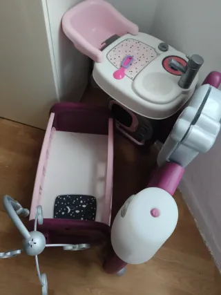 Set de juego de enfermera para bebés, ideal para el cuidado de muñecos. - Incluye cuna, bañera y accesorios. - Tonos rosas y morados.