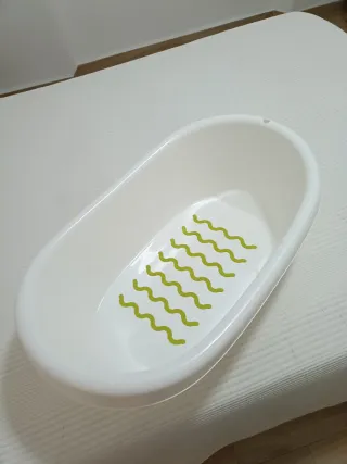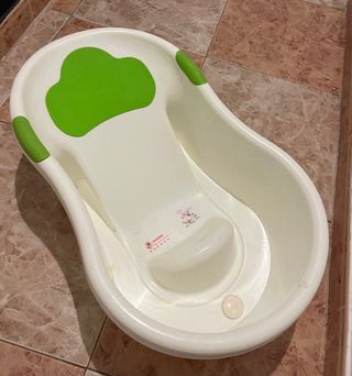 Bañera para bebé con muy poco uso, en buen estado. - Diseño con dibujos infantiles. - Tonos verdes y blancos.