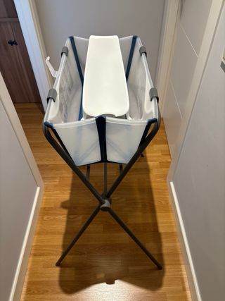 Soporte plegable para la bañera Stokke Flexi Bath. Facilita el baño del bebé. Esta nueva en perfectas condiciones como se puede ver en las fotos. El respaldo no esta incluido se vende por separado. - Estructura metálica. - Plegable para fácil almacenamiento.