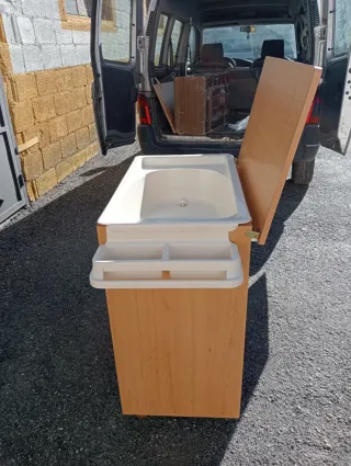 Mueble de madera con bañera incorporada para bebés. - Estructura de madera. - Bañera de plástico blanco. - estructura de madera con ruedas y baldas plegables _ medidas ancho 75,5 Fondo 46 Alto 88,5