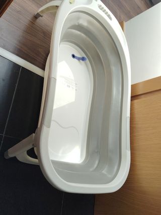 Bañera para bebé plegable, ideal para ahorrar espacio. Está en muy buen estado y es fácil de limpiar. - Plegable para facilitar el almacenamiento. - Material plástico resistente y ligero. - Diseño ergonómico para la comodidad del bebé.