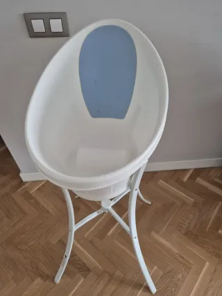 Bañera diseñada para la comodidad del bebé durante el baño. Incluye un soporte para facilitar su uso. - Color blanco y gris. - Patas de soporte incluidas. - Termómetro integrado. Recojer en Leganes ( Madrid)