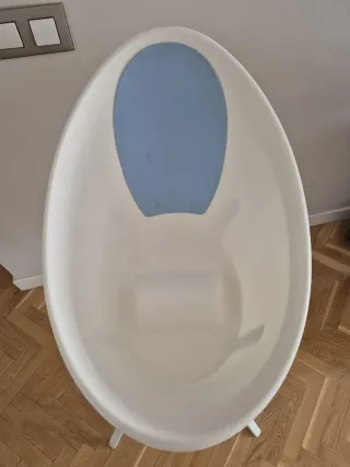 Adaptador de bañera para bebé Stokke, en buen estado. - Perfecto para facilitar el baño del bebé. - Material plástico resistente y ligero. - Diseño ergonómico y cómodo.