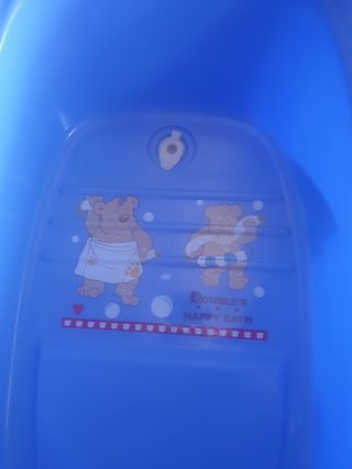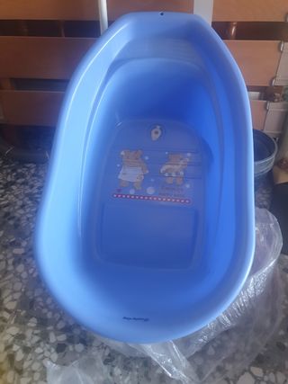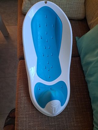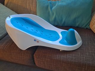 Soporte bañera para bebé recién nacido, en perfecto estado. Es cómoda y fácil de usar. - Diseño ergonómico para mayor comodidad del bebé. - Material plástico resistente y ligero. - Color azul y blanco.