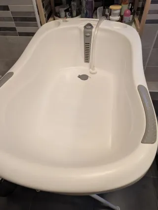 Vendo bañera para bebé plegable, ideal para ahorrar espacio en casa o para llevar de viaje. Marca Superbe Bébé. Estado: Usada. Presenta un rayón visible en el interior y algo de desgaste por el uso normal. Funcionalidad: Pliega y despliega perfectamente. Incluye el tapón de vaciado. Se entrega limpia y desinfectada.