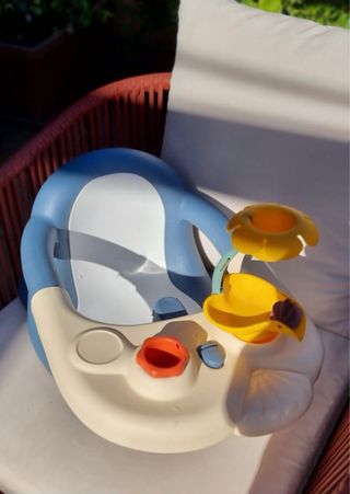 asiento para la bañera “de mayores”, para bañar al bebe cuando todavia no se sujeta bien sentado y hasta el año... pra que jueguen tranquilos rodeados de juguetes. muy poco uso, como nuevo
