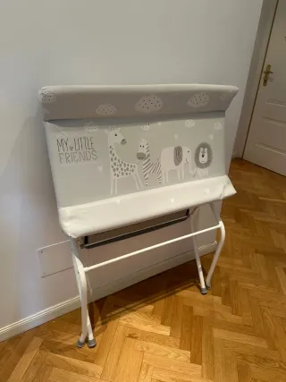 Bañera/cambiador Jané, prácticamente nueva, solo se ha usado unos meses por un solo bebé. Está en perfecto estado, la bañera es amplia y se puede colocar al bebé tumbado (los primeros 6 meses) o sentado (+6m). De regalo añado un cambiador de repuesto (la pieza de arriba) nuevo, a estrenar. A recoger en Majadahonda.