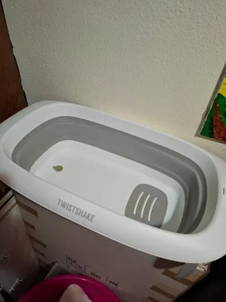 Bañera plegable para bebés de la marca Twistshake. Su diseño permite un fácil almacenamiento. - Color blanco y gris. - Material plástico.