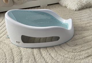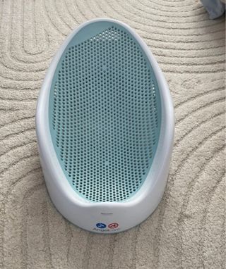 Asiento ergonómico para la bañera del bebé, diseñado para ofrecer comodidad y seguridad. - Superficie de malla perforada. - Borde de plástico blanco. - Marca: Angelcare. comprado en Amazon 45€