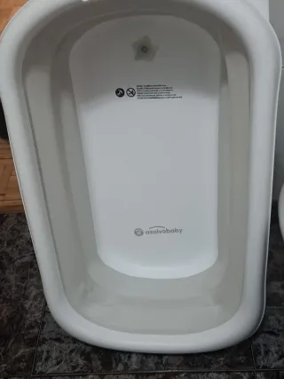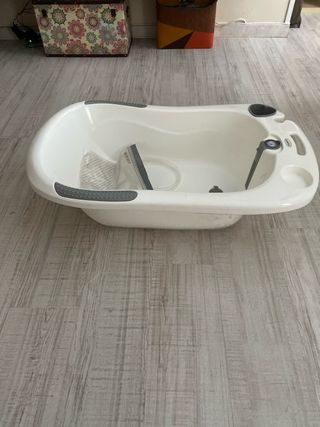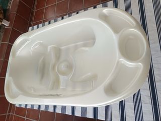 Bañera para bebé, ideal desde el nacimiento. Es blanca y está en perfecto estado. - Apta para bebés a partir de 0 meses. - Material plástico resistente. - Diseño ergonómico.