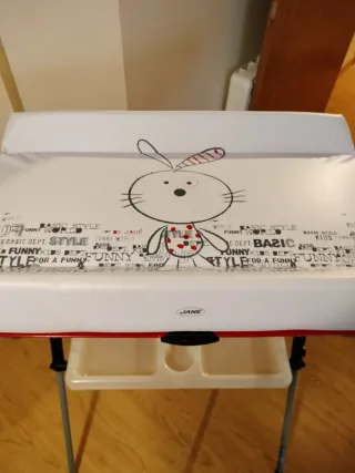 Cambiador de bebé de la marca Jane, (solo se ha usado 1 mes ) (costó 270€ )con un diseño estampado en tonos pastel y una práctica bañera incorporada. - Estructura resistente y estable. - Bandeja inferior para accesorios. - Colchoneta acolchada con estampado floral.