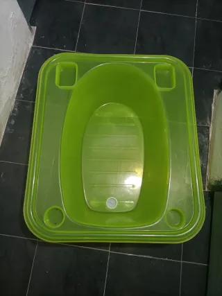 Bañera para bebé de la marca Jou, modelo Click. Es ligera y fácil de usar. - Color gris claro. - Diseño ergonómico. Cómo nuevo. + Orinal infantil ergonómico de la marca Tega Baby. Está fabricado con plástico de alta calidad, seguro para los niños. Su diseño ergonómico con respaldo alto proporciona comodidad. Nuevo.