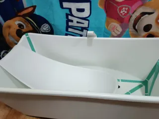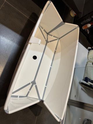 Bañera plegable de la marca Stokke, diseñada para facilitar el baño del bebé. - Diseño compacto y fácil de almacenar. - Materiales de calidad.