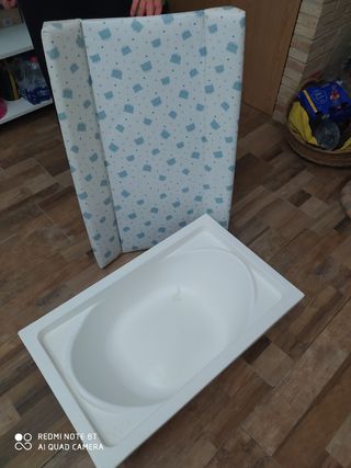 Es de la marca CAM como se ve en la última foto Usada muy poco, solo unas cuantas veces Sirve como bañera y como cambiador Tiene soporte para geles, champús...