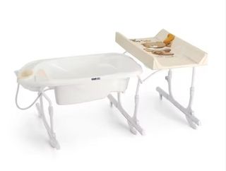 Bañera para bebé de la marca Jane, ademas tambien la doy con su estructura y su cambiador en perfecto estado, en color beige. Es perfecta para bañar a los más pequeños de la casa con comodidad y seguridad. - Incluye soporte para recién nacidos. - Material plástico resistente y fácil de limpiar. - Diseño ergonómico y cómodo. - Estructura con cambiador.