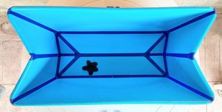 Bañera plegable de la marca Stokke en color azul. - Diseño compacto y fácil de guardar. - Materiales resistentes y seguros para bebés. Cuando se pliega no ocupa apenas espacio. Se rompió la pestaña de cierre pero tiene otra blanca para que quede cerrada