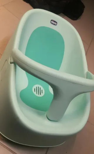 Bañera plegable para bebé, ideal para ahorrar espacio. Está en muy buen estado y es perfecta para bañar a tu pequeño con comodidad. - Plegable y fácil de guardar. - Diseño ligero y portátil. - Material plástico resistente.