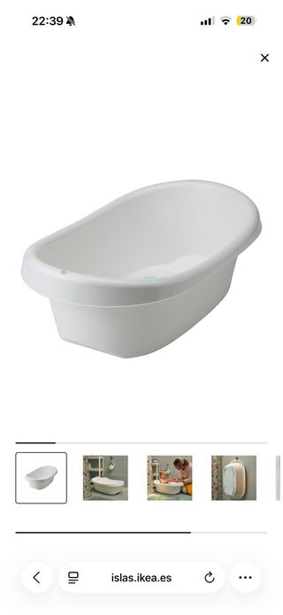 Bañera para bebés de IKEA, diseñada para la comodidad y seguridad. - Color blanco. - Material plástico. - Diseño ergonómico.