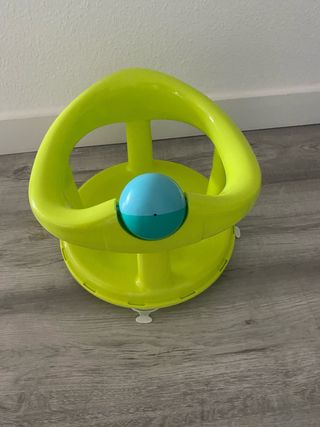 Asiento para la bañera infantil, ideal para que el bebé se siente cómodamente mientras se baña. Es de color verde lima y tiene un diseño alegre. Nuevo en su caja. Tiene ventosas, base giratoria para un baño perfecto. - Fabricado en plástico resistente. - Incluye un pequeño juguete integrado. - Diseño ergonómico y seguro para el bebé