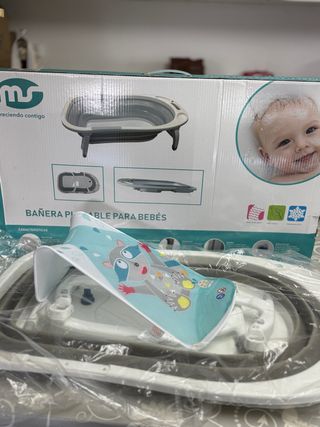 Kit de baño para bebé de la marca Twistshake en color gris. Sin usar (solo el cojin). Fue un regalo y no se usó por falta de espacio. Incluye: Bañera de 30 L: Plegable y que ahorra espacio. Soporte para bañera: Para una altura ergonómica y cómoda. Cojín de baño (lo único usado): Ajustable para un ajuste perfecto y confort. Los hay en Amazon por 10 euros. Enjuagador: Enjuague fácil y suave del cabello y el cuerpo. Juguetes de baño: Para que el baño sea aún más divertido. Manguera de drenaje: Vaciado práctico y sin derrames.
