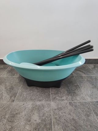 Bañera super útil,con tope para que el bebé no se escurra y ahorrar agua.