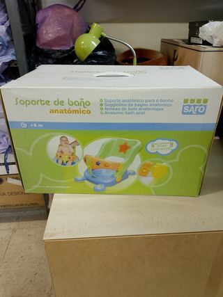 Soporte anatómico para el baño de tu bebé. Está en muy buen estado. - Soporte anatómico para baño. - Con apertura frontal. - Respaldo reclinable. - Bolitas sonoras. - Ventosas para una sujeción segura. - Para bebés a partir de +6 meses.