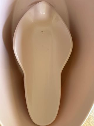 Bañera ergonómica para bebés, diseñada para la comodidad y seguridad durante el baño. Su forma se adapta al cuerpo del bebé. - Color rosa pálido. - Diseño ovalado. - Base estable. - con patas.