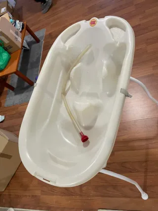 Bañera para bebé portátil y plegable, ideal para facilitar el baño de tu pequeño. Está en muy buen estado. - Patas plegables antideslizantes para mayor seguridad. - Superficie antideslizante para evitar resbalones. - Tubo de vaciado para facilitar el vaciado del agua.