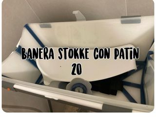 Bañera plegable de la marca Stokke, diseñada para la comodidad del bebé. - Incluye soporte para recién nacidos. - Diseño ergonómico y seguro. - Material de plástico resistente.