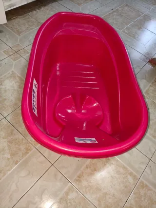 Bañera de plastico para bebe de 6 meses a 2 Años. ideal para poner encima del plato de ducha o dentro de una bañera y ahorrar agua y tranquilidad ya que no se resbala ni le cubre. perfecto estado