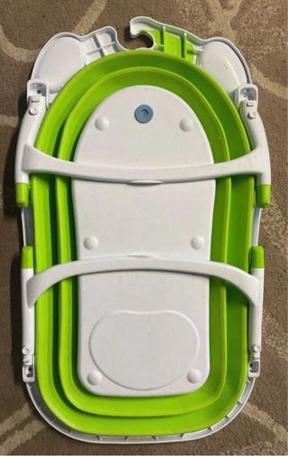 Bañera plegable para bebés, ideal para el baño diario. Incluye un soporte para mayor comodidad. - Color blanco y verde. - Diseño ergonómico. - Plegable para fácil almacenamiento.