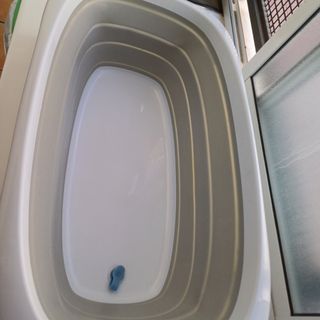 Bañera totalmente plegable , ligera y compacta . Cubeta anatómica rígida con tapón y tubo de desagüe . Ideal para pequeños espacios por su compacto plegado . Solo se ha usado 3 veces . 62cm largo x 46 cm ancho x 62cm alto.