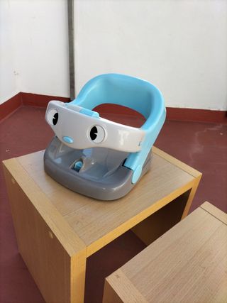 divertida silleta para bebé con distintas posturas del respaldo y ventosas en la superficie para fijarla al suelo.