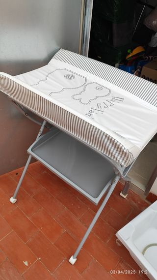Tiene un roto en el cambiador pero se podria arreglar con un cubertor. Práctico cambiador y bañera para bebés, ideal para el cuidado diario. - Diseño 2 en 1. - Incluye compartimentos para organizar. - Ruedas para fácil movilidad.