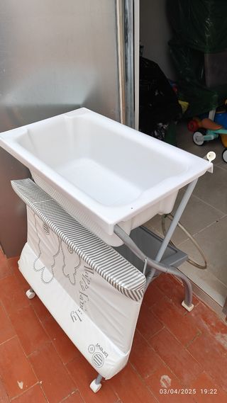 Bañera para bebes con cambiador. Tiene su uso, pero funciona perfectamente.