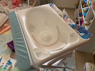 Preciosa bañera cambiador para bebé, ideal para facilitar el baño y el cambio de pañal. Se encuentra en buen estado. - Incluye bañera y cambiador. - Estructura plegable para facilitar el almacenamiento. - Diseño ligero y práctico.