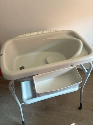 Bañera cambiador de la marca CAM en perfecto estado. Ideal para el cuidado del bebé. - Estructura robusta y estable. - Bandeja organizadora. - Ruedas para facilitar el desplazamiento.