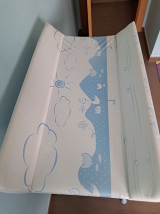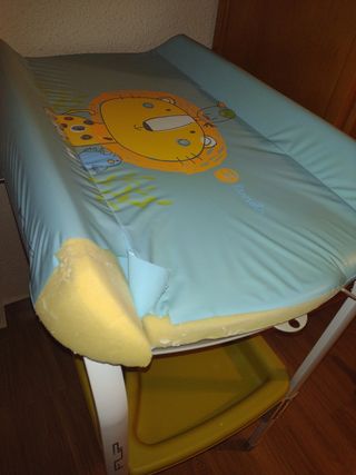 Cambiador de bebé con bañera.Cabe encima del bater. Esta en bastante buen estado. Solo tiene dos esquinas un poco rotas como se ve en la foto. Le falta el tubo para vaciar la bañera, pero era un tubo normal que lo encuentras en cualquier ferreteria.