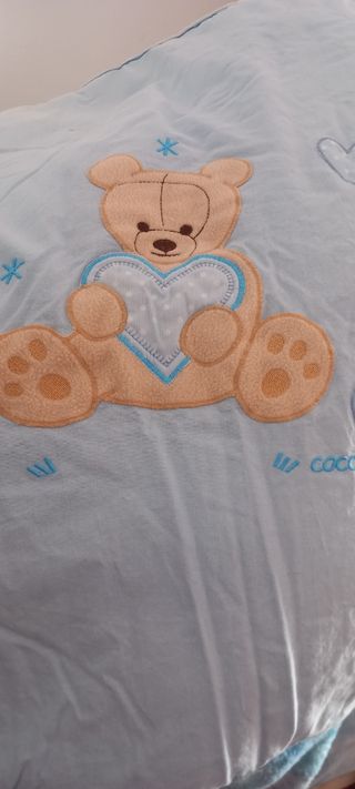 Lote completo para un bebé recién nacido Se compone de un colchón impermeable para un cambiador para baño o cama cuna como uno quiera usar. Juego de sábanas completo, bajera blanca ajustable Sabana superior rosa bebé con almohada a juego. Almohada para bebé finita Colcha en azul muy bonita sin estrenar para una cuna grande Y a juego la tela funda del colchón para el cambiador de la bañera. Total 7 unidades Colchón 3 piezas de sábanas Almohada Colcha azul bebé Funda cambiador Algunas cosas algo usadas otras sin estrenar pero todo en muy buen estado. Perfecto para empezar.